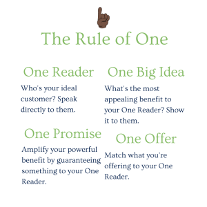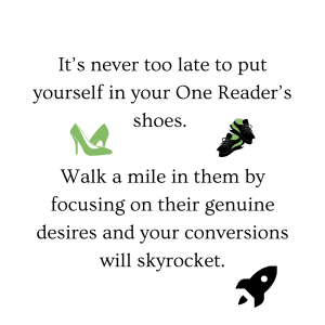 Your one reader is the foundation of your audience. You have to know your ideal prospect to persuade them. You can’t write for everyone. You’ll end up reaching no one. The best suited one readers:
