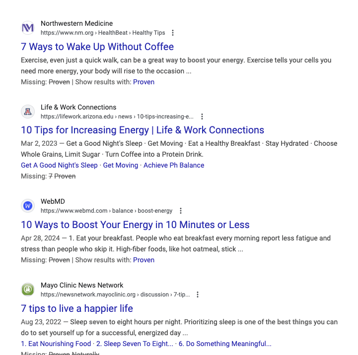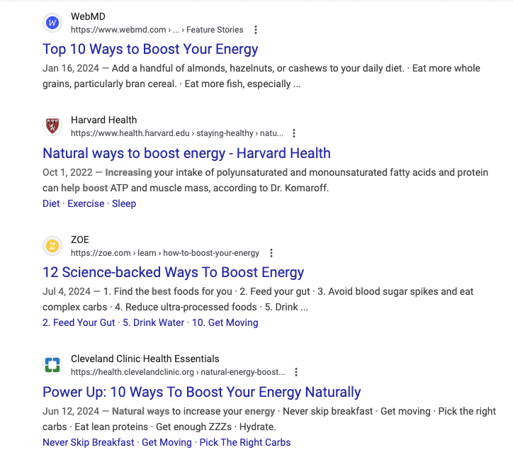 He wants to understand his options. If your brand publishes a detailed blog post titled “7 Proven Ways to Naturally Boost Energy,” with actionable tips and scientific insights, Sam will leave feeling empowered and with your brand top of mind.