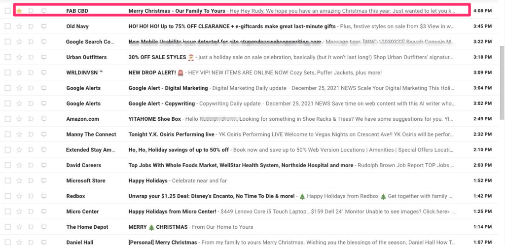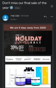 FabCBD does this masterfully in their subject lines and throughout the body copy.