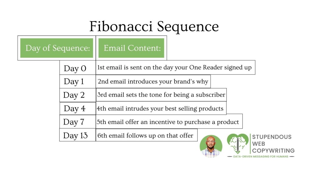 Use nature to schedule your autoresponder to reach out to your audience with perfect timing to move them along your sales funnel. Combine Fibonacci sequence with a copywriting formula like: