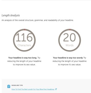 Number 2 on my headlines tools list gives you a score based on word balance. And it provides a length analysis based on characters and words. Components of the word balance are: