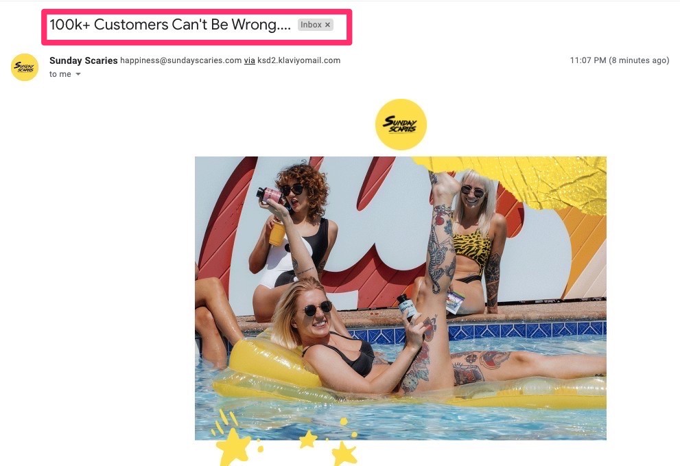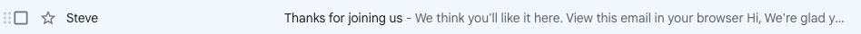 Congratulate your subscriber for joining but don’t say thank you in your subject line. It is the second most common phrasing to use. Use as much personalization as possible.