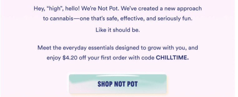 CBD companies like Not Pot have a mission that differentiates them from others. Highlighting the story influences your one reader to purchase because you’re a brand that aligns with their values.