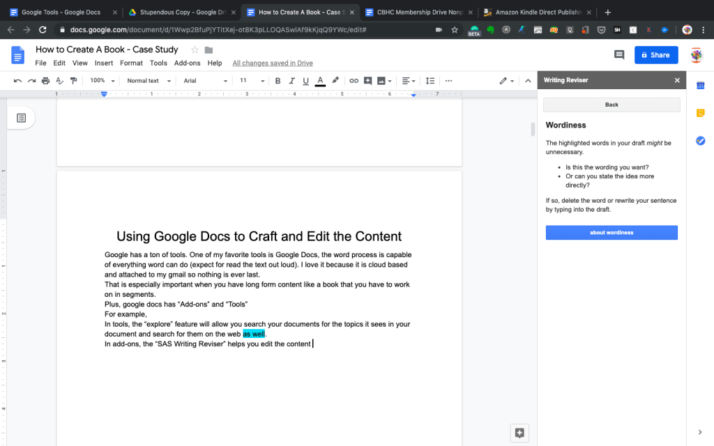 It is an add-on for Google Doc users. It highlights key elements of writing like wordiness, passive voice, sentence fragments, and run-on sentences.