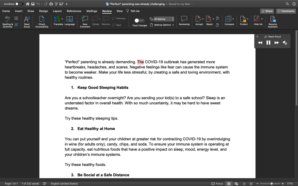 I only use Word for the “Read Aloud” feature, but I LOVE listening to client copy out loud as I revise.