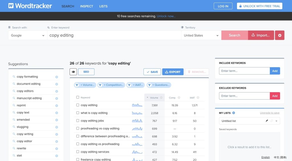 Use Wordtracker when you’re optimizing your page for medium and long-tail keywords.