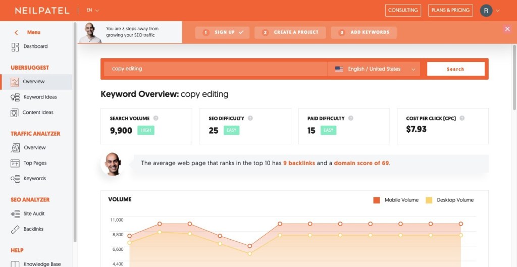 A Neil Patal keyword tool that provides analytics for your content ideas.