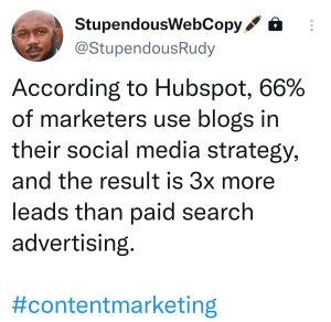 Your content marketing strategy depends on where your one reader hangs out online. Marketers use social media and email to distribute blog posts to their one reader. Sharable content attracts a broader audience, and your business will grow as people link to your posts. You should do market research to find out the top 2–3 channels to market your blog posts.