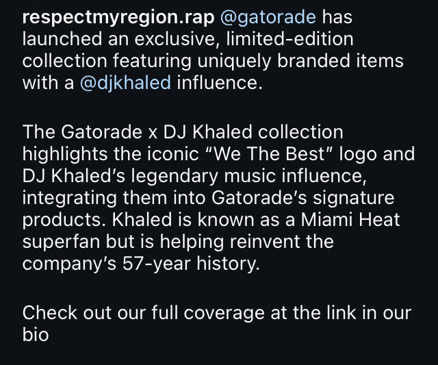 - Respect My Region: GATORADE X DJ KHALED CAPSULE COLLAB DEBUTS LIMITED-EDITION COLLECTION
