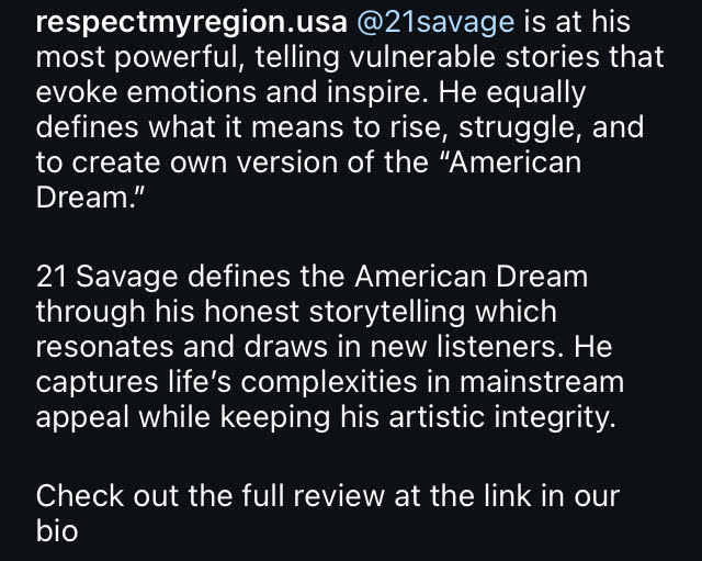 - Respect My Region: 21 SAVAGE AMERICAN DREAM: A LOT OF SLAUGHTERING SUCCESS